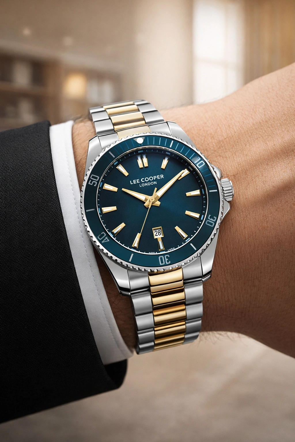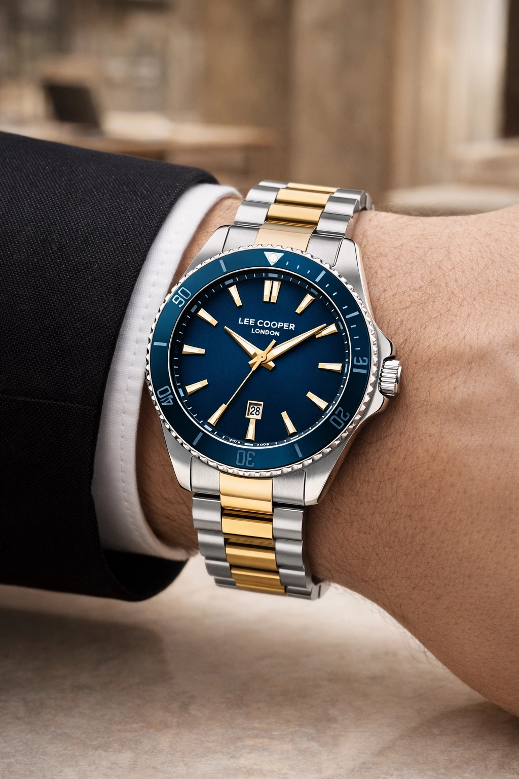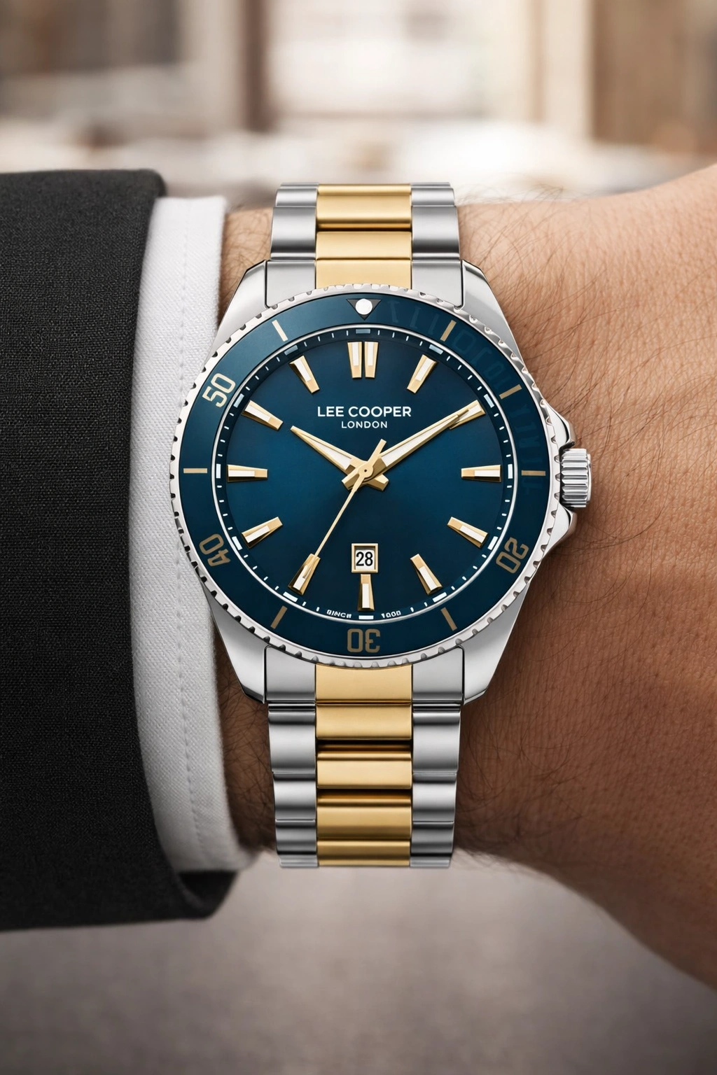 Lee Cooper Gümüş-Gold Renk Çelik Kordon Erkek Kol Saati 3atm Bileklik Sdlc028