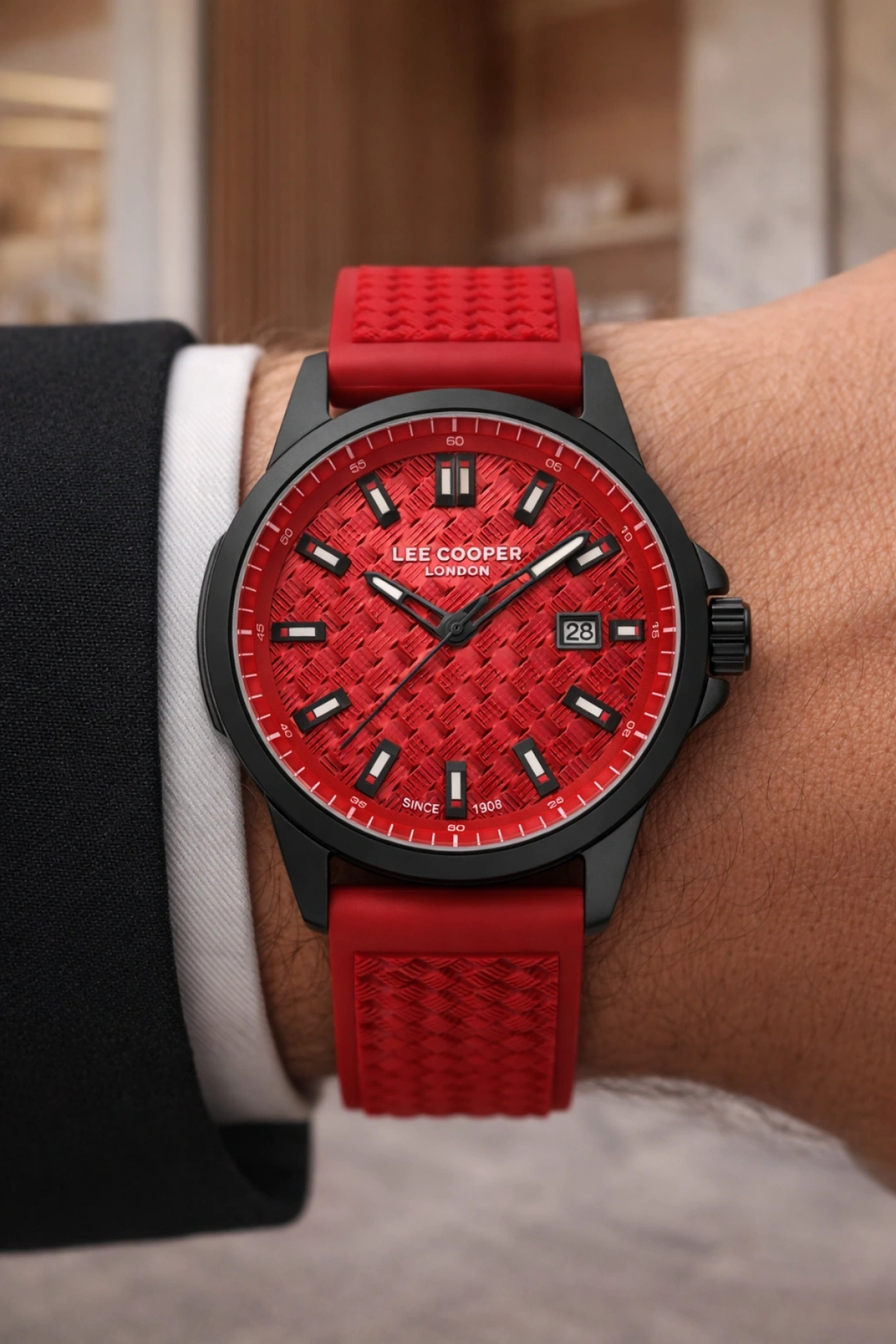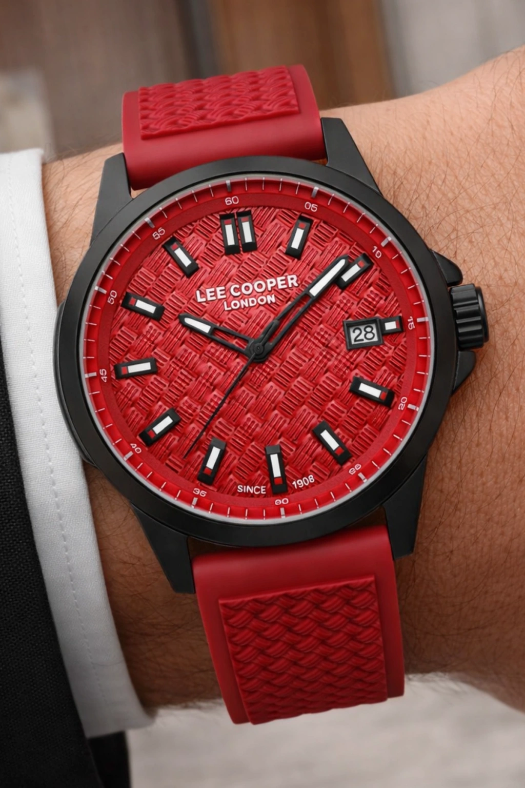 Lee Cooper Kırmızı Renk Silikon Kordon Takvimli Erkek Kol Saati 3atm Bileklik Sdlc020