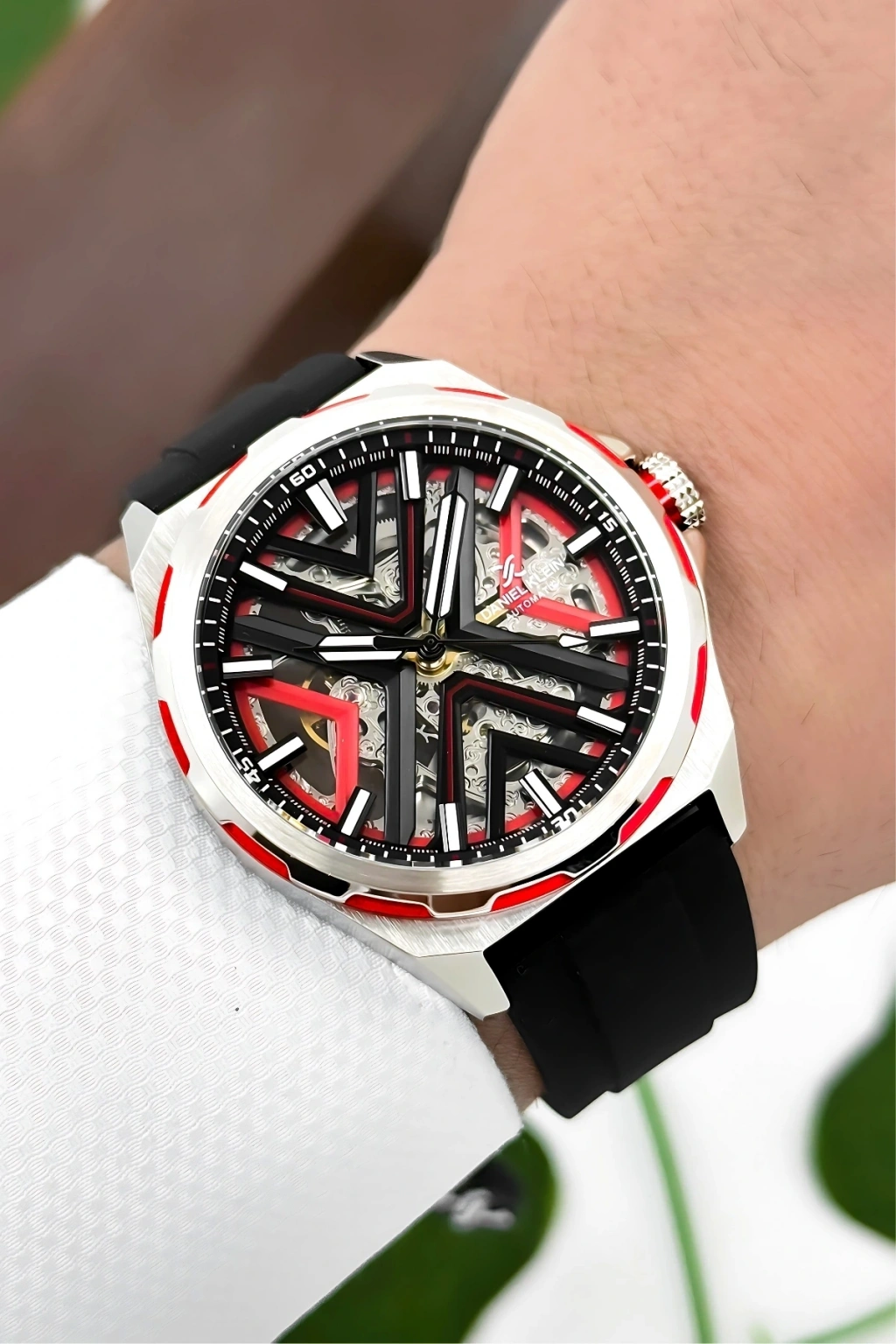 Daniel Klein Silikon Kordon Çelik Kasa Otomatik Mekanizma Erkek Kol Saati Siyah-Kırmızı sddk102