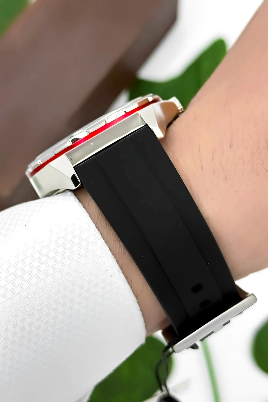 44 mm kasa çapı ve 20 mm kordon genişliğiyle güçlü bir görünüme sahip bu model, çelik kasa ve silikon kordonun mükemmel birleşimini taşır. Beyaz silikon kordon, konforlu yapısıyla günlük kullanıma uygundur ve sportif bir duruş kazandırır. Parlak çelik kasa ise saate zarif ve lüks bir hava katar.