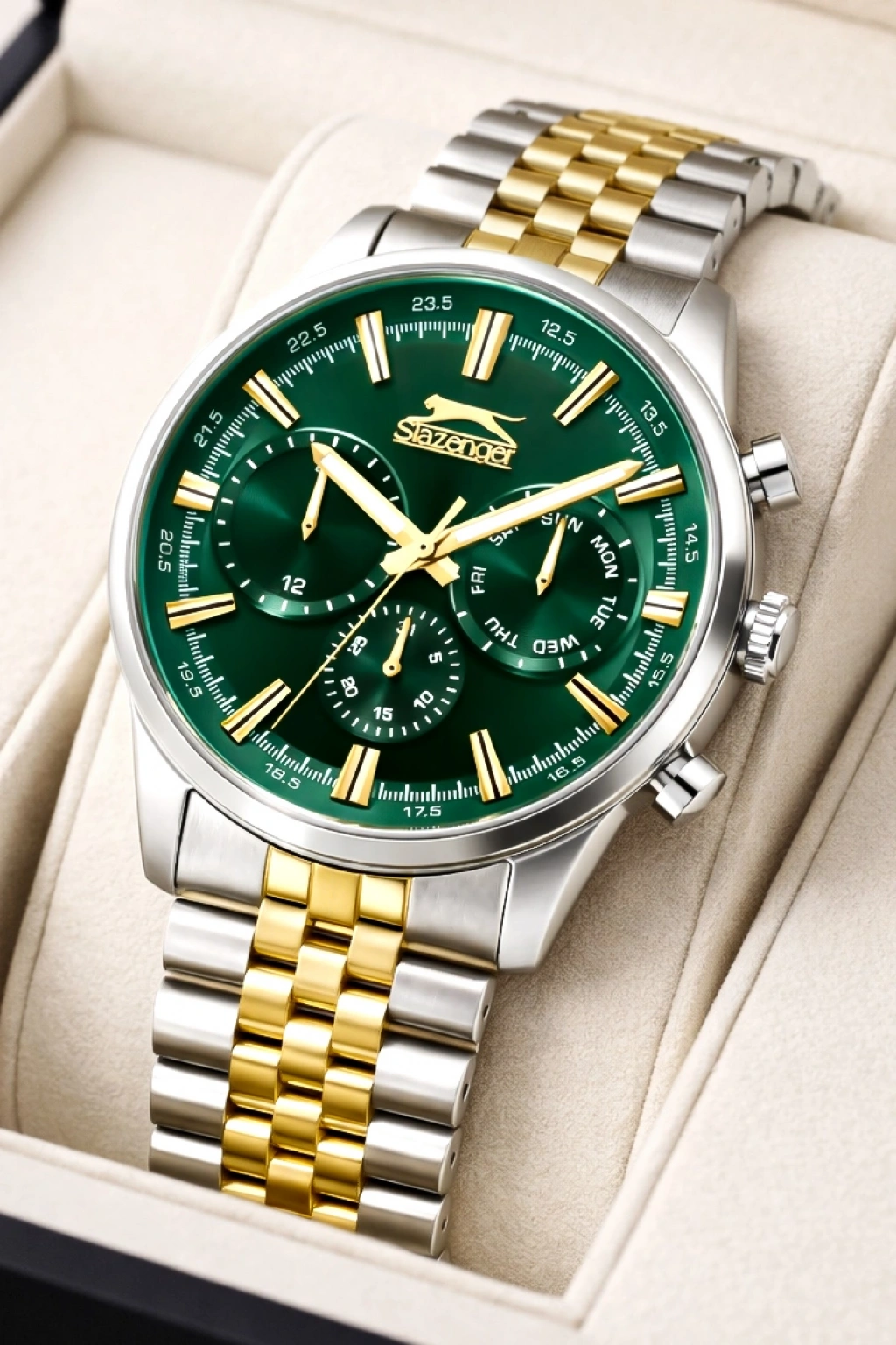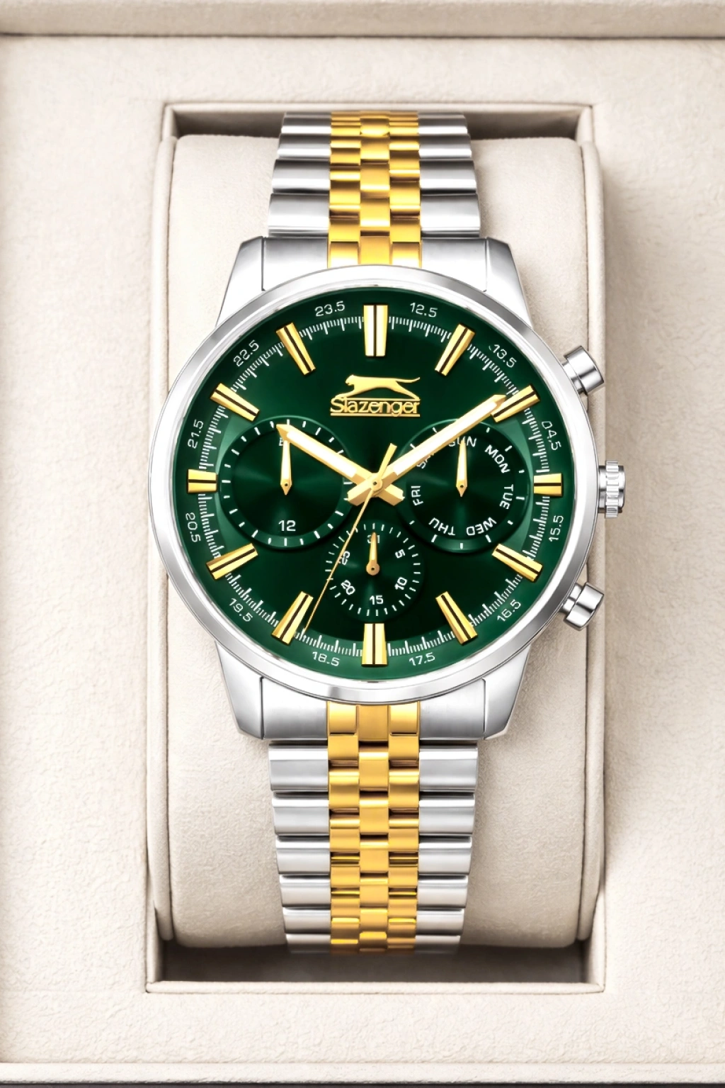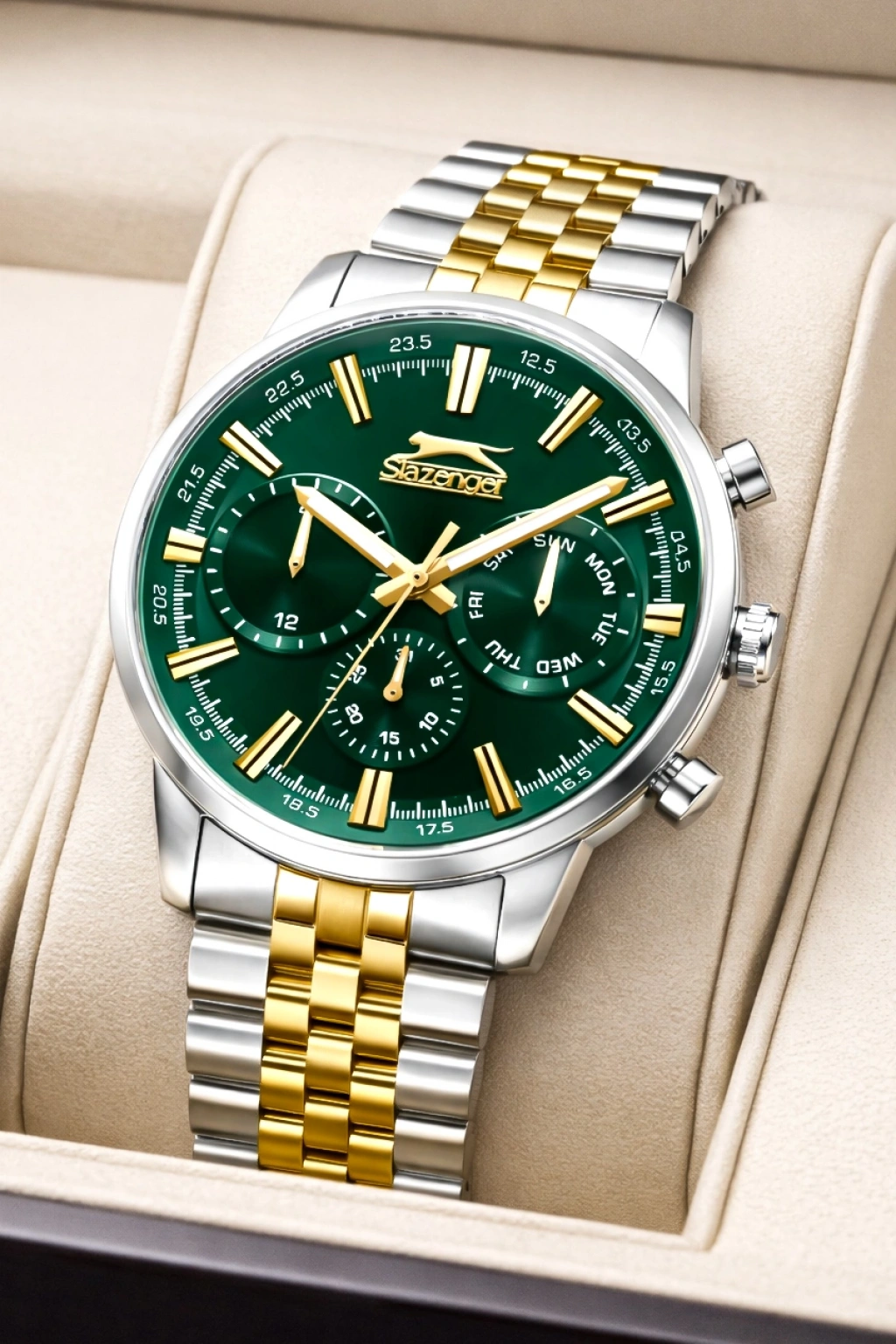 Slazenger Fonksiyonlu Çelik Kordon, Çelik Kasa Erkek Kol Saati Bileklik Hediyeli Gümüş-Gold sdslz018