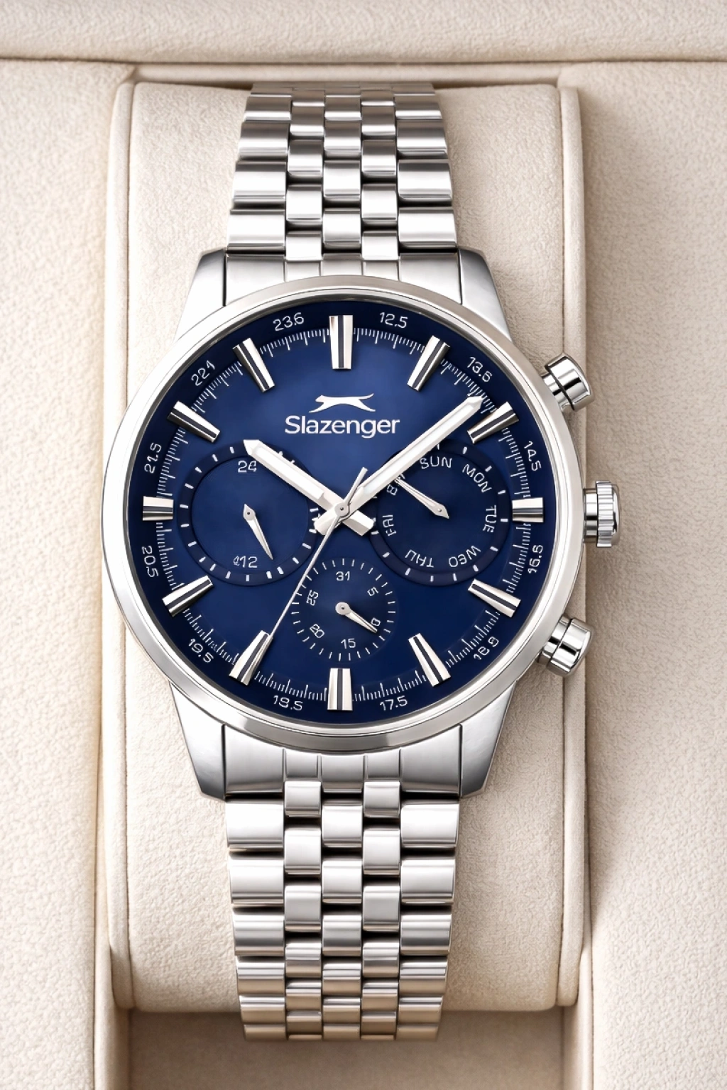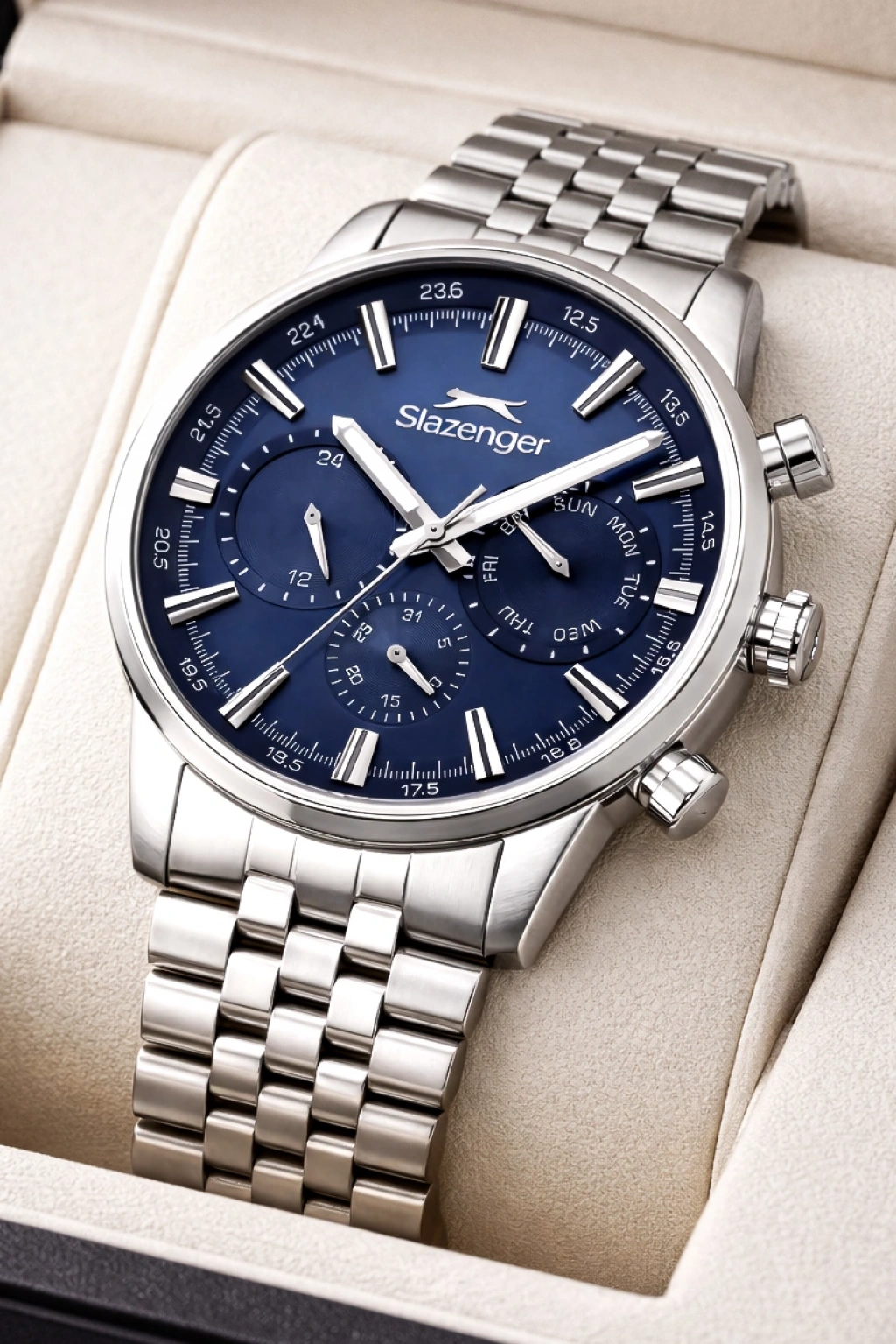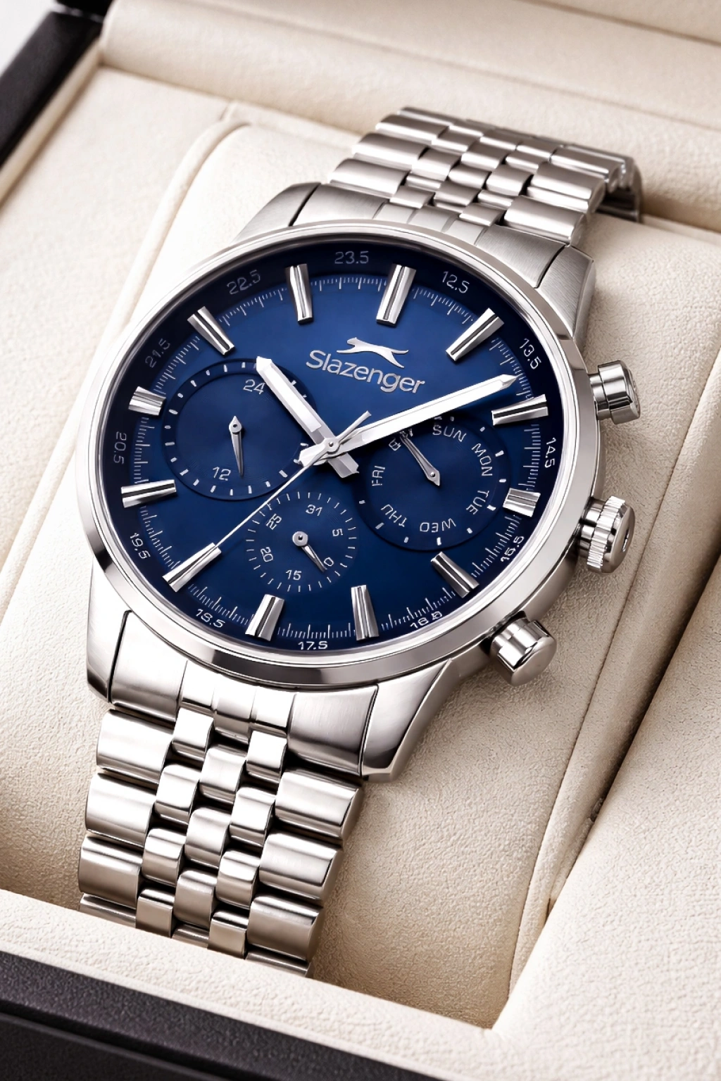 Slazenger SL.09.2453.2 modeli, ilk bakışta dikkat çeken güçlü kasa yapısı ve sofistike kadran tasarımı ile öne çıkar. Saatin: