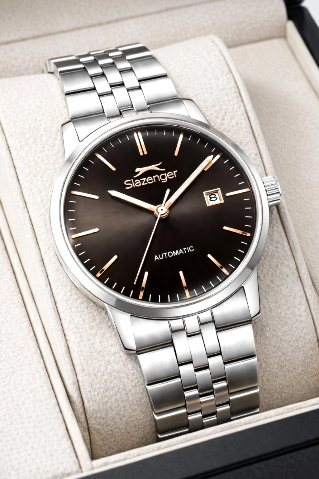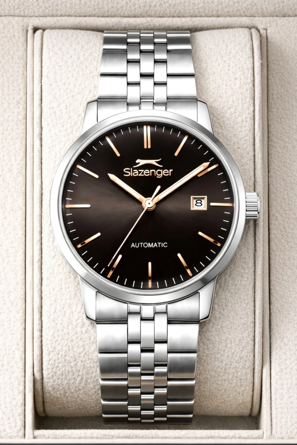 Slazenger Otomatik Mekanizma Çelik Kordon, Çelik Kasa Erkek Kol Saati Bileklik Hediyeli Gümüş-Rose sdslz017