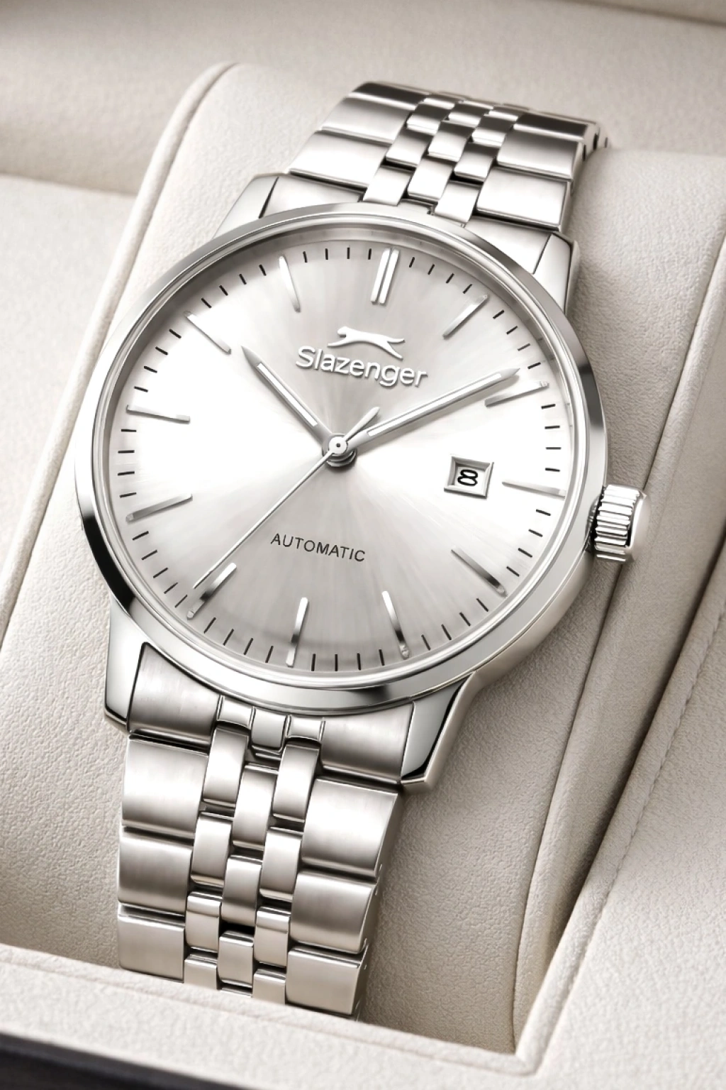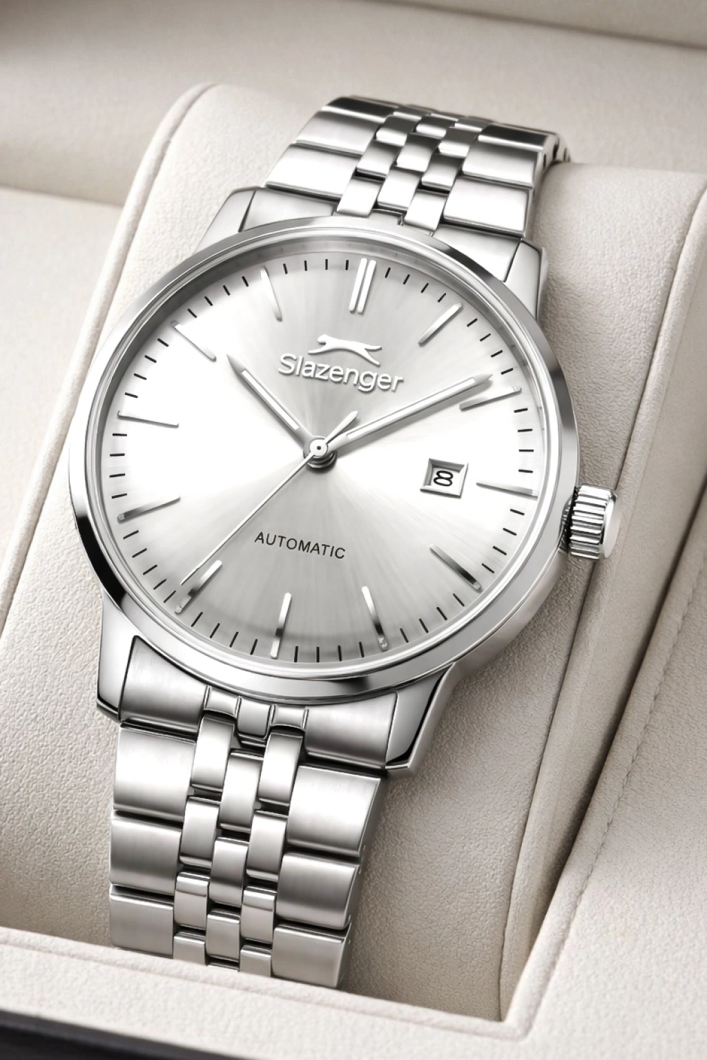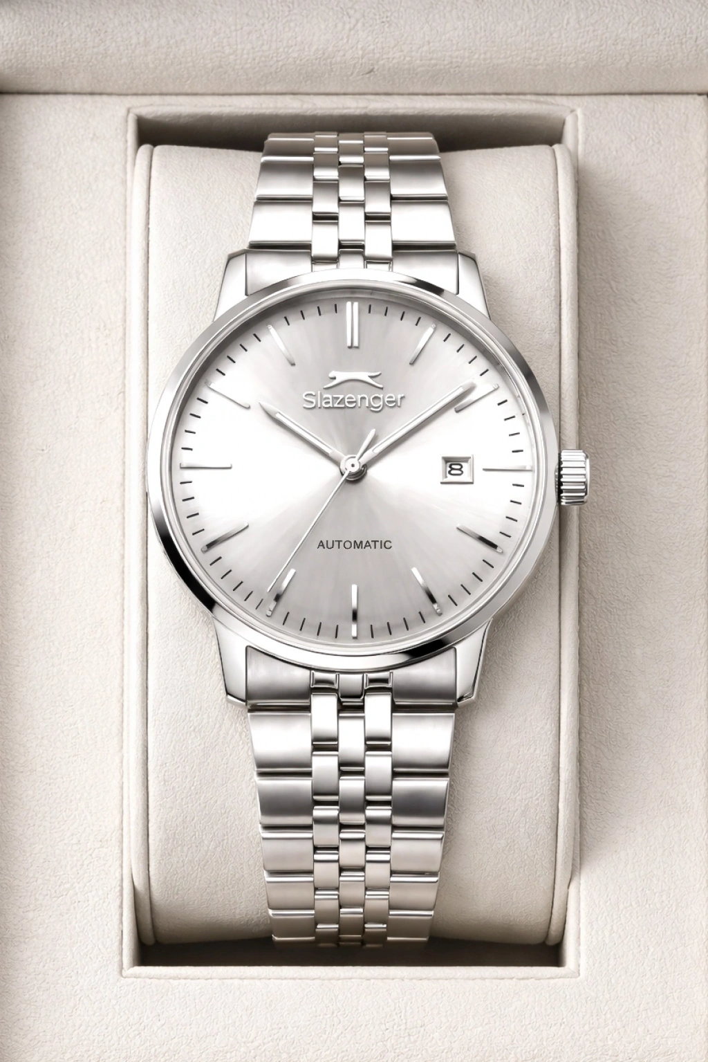 Slazenger Otomatik Mekanizma Çelik Kordon, Çelik Kasa Erkek Kol Saati Bileklik Hediyeli Gümüş-Beyaz sdslz017