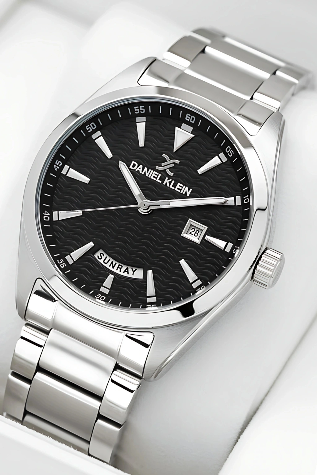 Modern erkek stiline hitap eden bu model, zamansız tasarımı ve Daniel Klein markasının global kalite anlayışı ile uzun yıllar keyifle kullanılabilecek bir parçadır. Çelik kordonun sağladığı dayanıklılık, metalin parlak ve modern görünümüyle birleşerek hem ofis şıklığı hem de günlük kombinlerde mükemmel uyum sağlar.