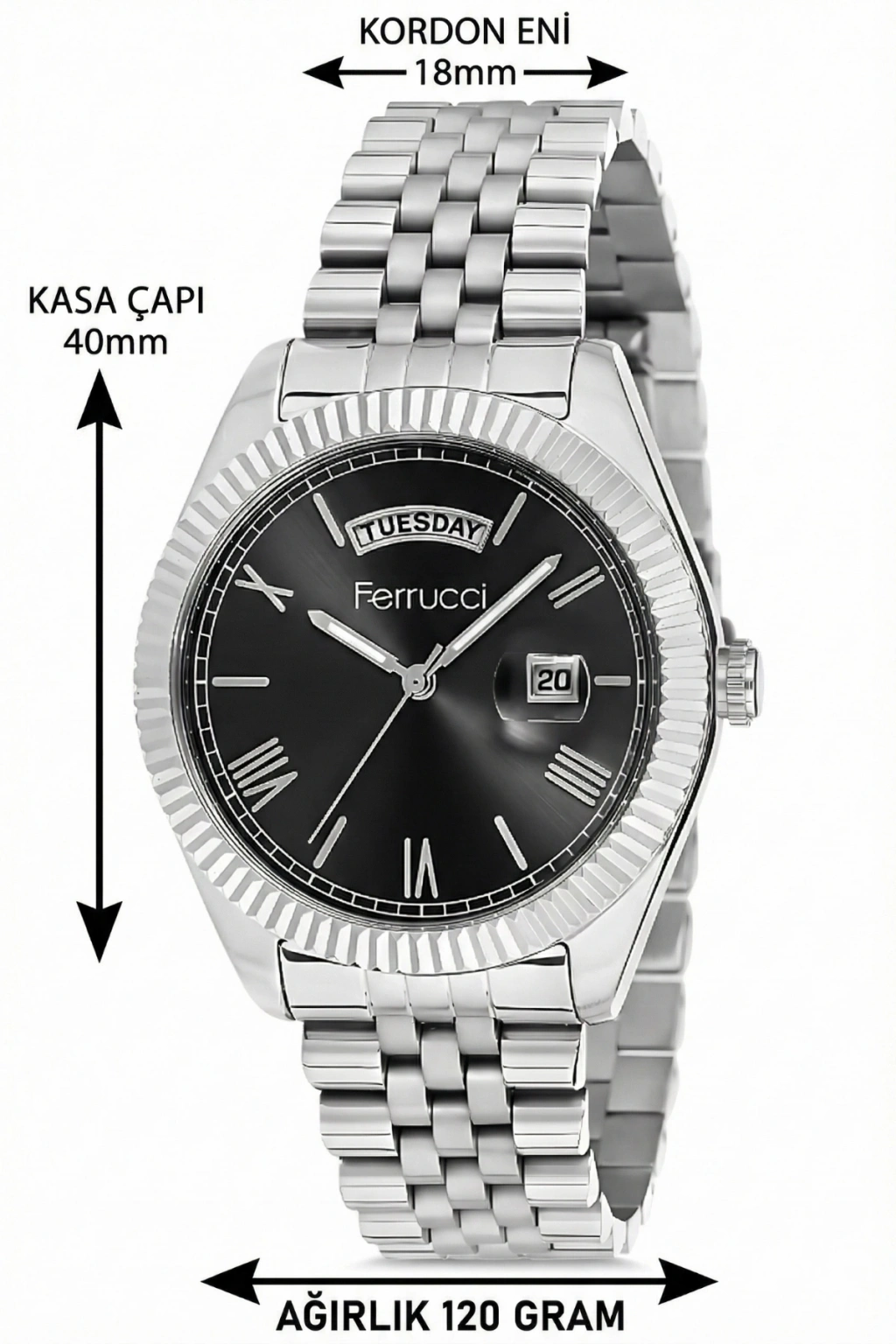 • Ferrucci Erkek Kol Saati | 40 mm | Çelik Kordon | Gün & Tarih Göstergeli | Model: SDFER194