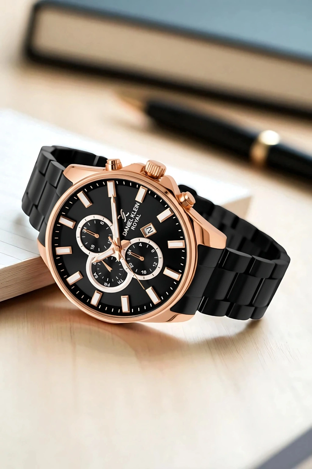 • Modern erkeğin stilini tamamlayan daniel klein royal sddk111 modeli, zarafet ve işlevselliği bir araya getirerek her anınıza değer katıyor. Rose gold kasa ve siyah çelik kordonun güçlü kontrastı, saatin hem gündelik kombinlerde hem de özel davetlerde etkileyici bir aksesuar olmasını sağlıyor.