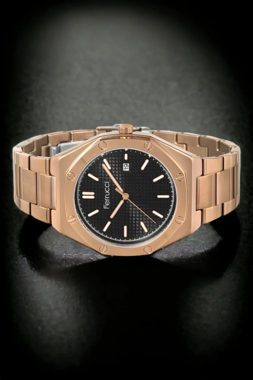 Ferrucci Marka Çelik Kordonlu Erkek Kol Saati: Zamanın Ötesinde Bir Şıklık; Zamana Meydan Okuyan Tasarım: Ferrucci'nin bu özel tasarım erkek kol saati, 42mm'lik zarif çelik kasası ile sadece dayanıklılığı değil, aynı zamanda sofistike bir estetiği de vurgular. Bu saatin, modern ve şık görünümü ile her bilekte öne çıkacağı kesindir.; Çizilmeye Dayanıklı Mineral Cam: Günlük kullanımın getirdiği zorluklara karşı dayanıklı olan bu saat, özel geliştirilmiş çizilmeye karşı dayanıklı mineral cam teknolojisi ile donatılmıştır. Bu özellik, saatinizi her daim yeni gibi korumanıza olanak tanır.; Kaliteli Çelik Kordon: Ferrucci'nin zarif çelik kordonu, konfor ve dayanıklılığı bir arada sunar. Hem iş hayatınızda hem de özel günlerde mükemmel uyumu ve rahatlığı sağlar.; Pratik Takvim Özelliği: Saatin mercekli takvim özelliği, günlük hayatta pratik bir kullanım sunar. Bu özellik sayesinde tarihi kolayca okuyabilir ve gününüzü daha verimli planlayabilirsiniz.; Estetik ve Fonksiyonel Tasarım: 42mm çelik kasası ile bu saat, hem şık hem de fonksiyonel bir aksesuar olarak bileğinize zarafet katacaktır.; Sonuç: Modern erkeğin stilini tamamlayan Ferrucci marka çelik kordonlu erkek kol saati, kalitesi ve fonksiyonelliği ile sizi etkileyecek. Saat tutkunları için vazgeçilmez bir tercih olan bu model, zamanın ötesinde bir deneyim sunar.;