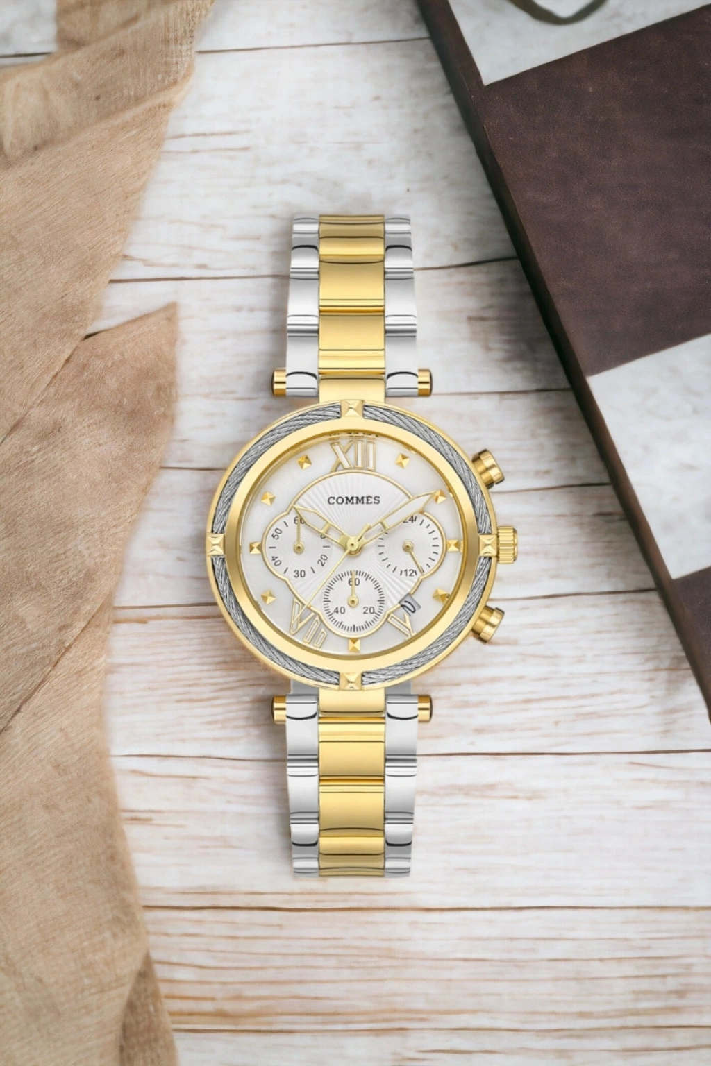 Commes Takvimli Gold-gümüş Çelik Kordon Çelik Kasa Kadın Kol Saati Sdcms034